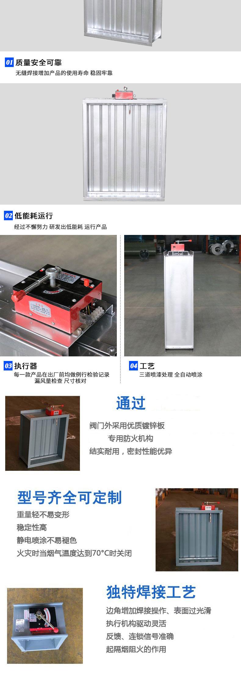 防火阀是一种记忆熔合金的温度控制,利用重力作用和弹簧机构的作用关闭的阀门形式。新型产品中亦有利用记忆合金产生形变使阀门关闭的。