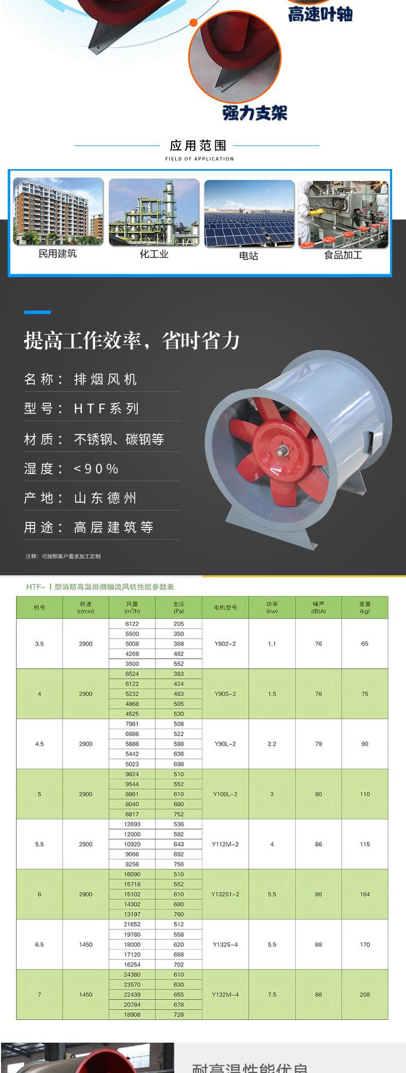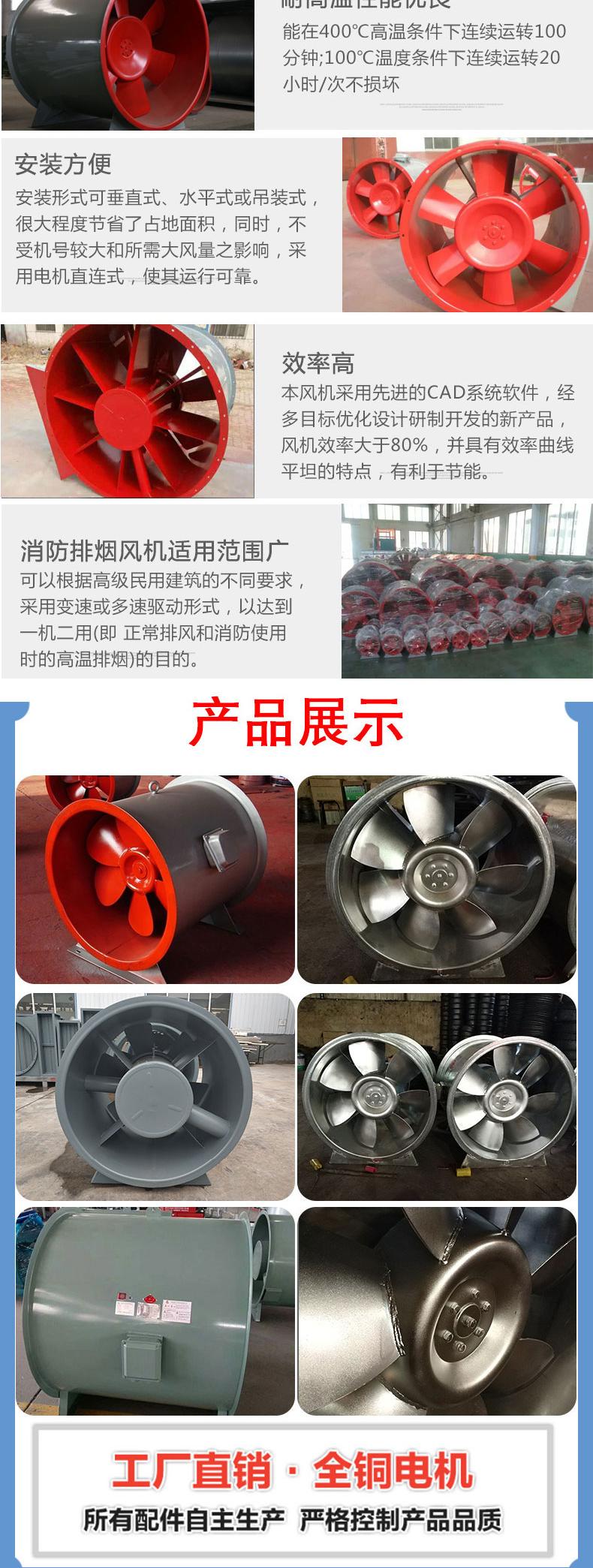 消防高温排烟风机适用于高层建筑、地下建筑及隧道、烘房等通风换气或高温排烟。能在280℃高温条件下连续运转30分钟以上,介质温度100℃条件下连续运行20小时/次不损坏。